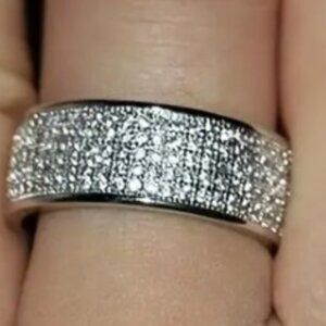 ❤️ 3 Silver Plated Rings - 1 Paved Zirconia Sz 6m M - 2 Paved Zirconia Sz 7 W