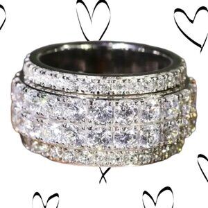❤️ 2 Round Silver Plated Paved Zirconia Ring - Size 7 Women