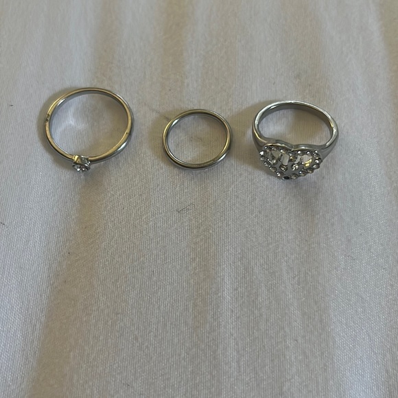these three rings are a perfect pop to your outfit! One of the rings is a bit smaller for your pinky or anybody’s think would fit the ring and the other 21 is a much bigger ring in the other ones medium so matter how was your fingers are or how small your fingers are there’s of a wide variety it could fit If you are interested, please send an offer I am willing to drop prices. Thank you.