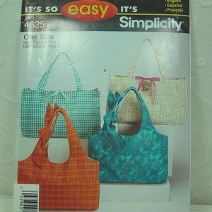 This listing is for 4 purse patterns--3 of them are Simplicity & 1 is Lazy Girl Designs. The Simplicity pattern in the second picture has been cut & used. The others are uncut & unused. Patterns are in good condition.