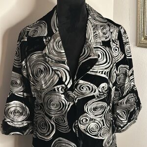 3 Sisters art deco circles print velvet swing blazer coat red polka dot lining S