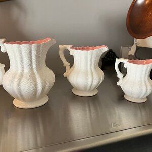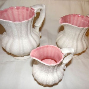 3 Small Decorative Pitchers Pink/White