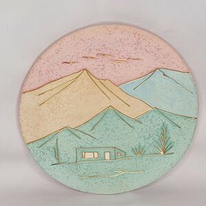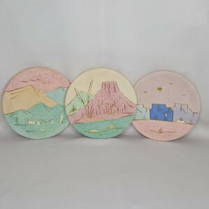 3 Southwestern Landscape Pottery Wall Plates Pastel 22kt Gold Textured Glaze