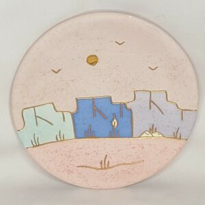 3 Southwestern Wall Plates Landscape Pottery Pastel 22kt Gold Textured Glaze