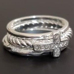 3 Stackable Avon Silver Cross Women's Ring Prayer