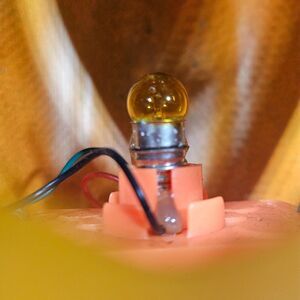 Exterior is in good shape with a few scuffs from normal handling. This lighted display takes 2xAA batteries (not included). Battery compartment shows some evidence of corrosion, and the light inside does not turn on. May need a replacement bulb and/or repairs.