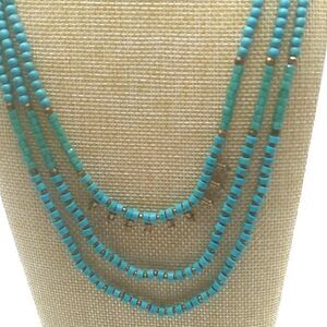 3 Strand Beaded Necklace Silver-tone Round Spacers & Spikes on 2 Leather Cords