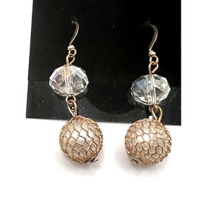 Description: Vintage 3 Strand Crystal & Faux Pearl Glass Beaded Chain Necklace Earrings Set