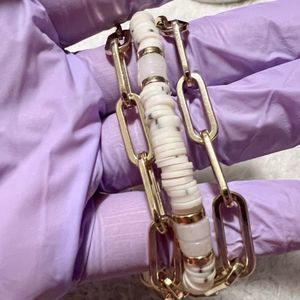3 Strand Gold Tone Beaded Chain Link 7 Inches Magnetic Clasp Fashion Bracelet