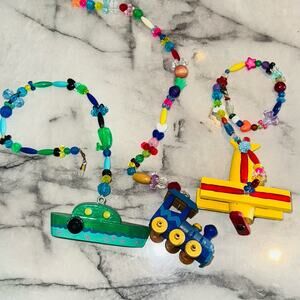 3 Strand Handmade Beaded String Airplane Train Boat Mobile Toran Hanging Art