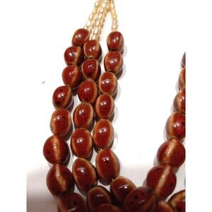 3 Strand Necklace Amber/Brown Beads Seed Pearl Look Adjustable Length Handmade