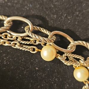 3 Strand Silvertone & Faux Pearl Chain 16" Long Necklace