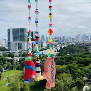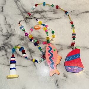 3 Strands 90s Sailboat Fish Lighthouse Handmade Beaded String Mobile Toran