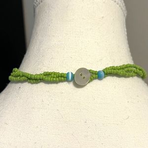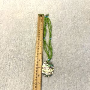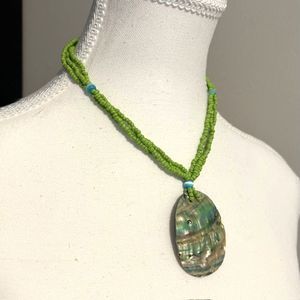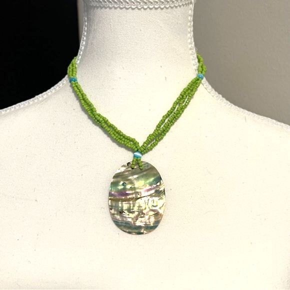 3 Strands Green Seed Beads Abalone Shell Pendant Statement Necklace
