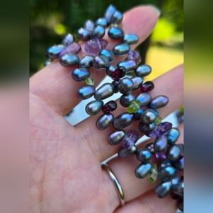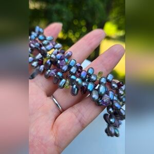 3 Strands Multicolor Peacock Pearl Necklace Amethyst With Silver Slaps