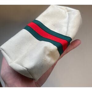 Stripe Travel Coin Purse Mirror Sewing Kit Vintage Ivory Red Green.