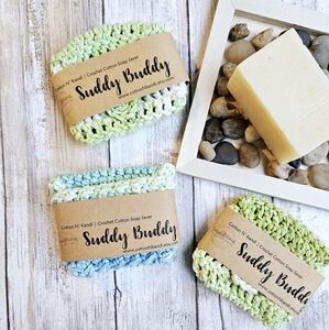 3 Suddy Buddy Soap Savers- Cotton N' Kandi, Handmade Crochet