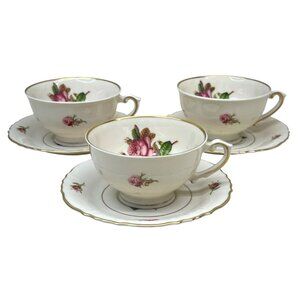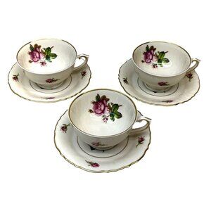 3 Syracuse China Federal Shape Victoria Rose Cup & Saucer Sets