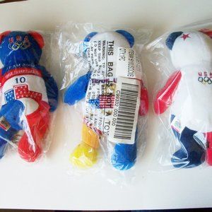 3 bears original Olympic team. TY club bag handle torn as pictured, and can be fixed.