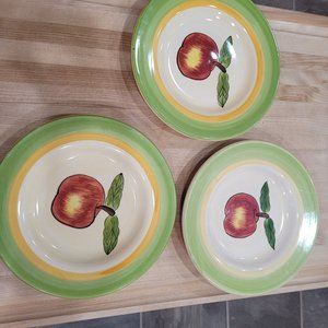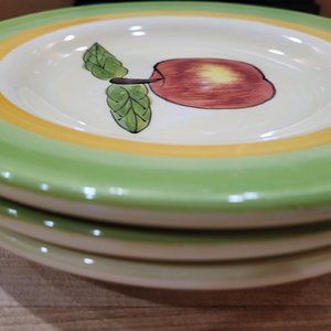 3 Tabletops Unlimited Hand Painted Retired Apple 8.75" Salad Plates EUC