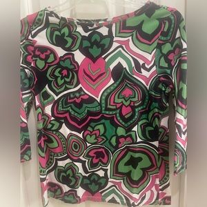 3 tees with 3/4 sleeves, stretchy fabric, vibrant prints. All EUC!