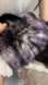 One of a kind! This stunning fluffy bag is handmade from premium genuine Fox fur with Mink fur handles. Dyed beautiful 3 tone fur color, olive to purple to beige gradient.