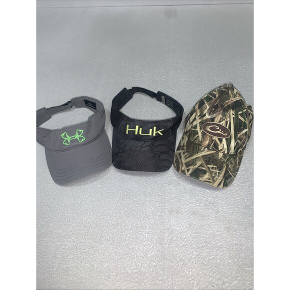 3 Under Armour Huk Drake Men's Camo VisorOne Size Fits All Hunting/Fishing Hats. Condition is Pre-owned. Shipped with USPS Ground Advantage.