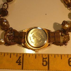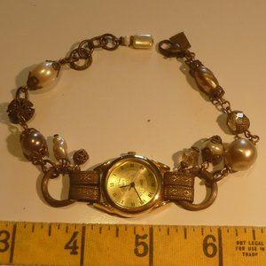 3) Legacy Gold Faced Fashion Watch with Faux Pearl Adorned Band