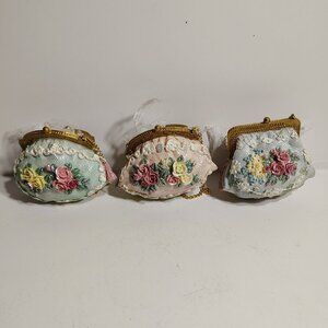 3 VTG 1998 Lilian Vernon Victorian Lace Handbag Purse Couture Ornaments Vanity