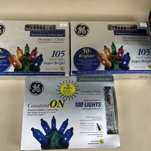 3 VTG 2005 GE Mini Christmas String Light Set-105 Lights 34.6’, 100 Lights 41.2