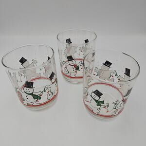 3 VTG Libbey Dancing Snowman Lowball Glasses. EUC Free Shipping