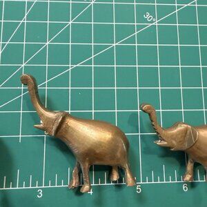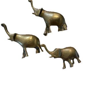 These vintage Mid-Century Modern brass elephants figurines are a charming addition to any collection, adding a touch of Hollywood glamour and whimsy. The brass material gives them a luxurious and classic look, while the elephant design adds an playful and unique element. Perfect for collectors of animal figurines or those looking for unique paper weights, these pieces are sure to bring a touch of vintage charm to any space. Please view all photos as they are part of description including approximate measurements and condition. Signs are wear present consistent with age