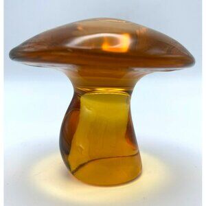 • Amber brown glass mushroom measures: 2 1/4 inches tall by 2 3/4 inches diameter at cap
