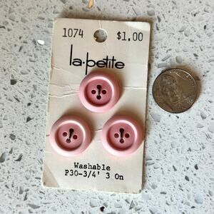 3 Vintage 1960s Buttons On Card La Petite Light Pink 4 Hole Flat Round 3/4" Washable