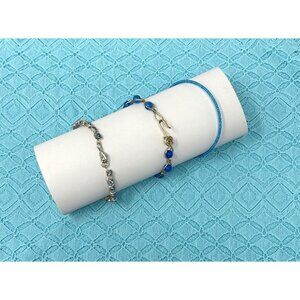 3 Vintage 1990s Handcrafted Blue Beaded & Wire Wrapped Bracelets