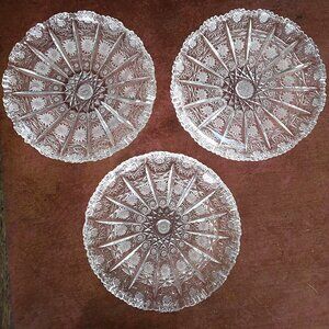 3 Vintage American Brilliant Hand Cut Crystal Lace and Hobstar Trinket Dishes
