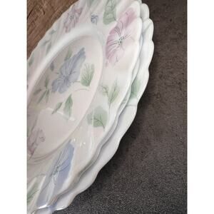 3 Vintage ArCopal France Chloe Dinner Plates Pastel Floral Flowers Blue Pink.