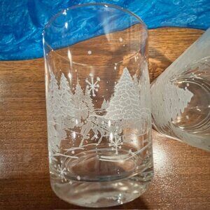(3) Vintage Avon Presidents Club Etched Sleigh Through the Woods Rocks Glasses