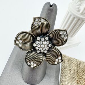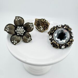 3 Vintage Bronze Tone Rings Stretch Chunky Retro Flower Statement Square