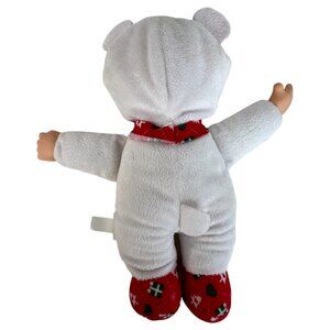 Holiday Helper Snowflake wearing white outfit with Christmas fabric tie and shoes