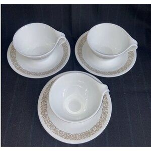 3 Vintage Corelle Woodland Brown cup & saucer sets hook handle Corning 6 pcs EUC
