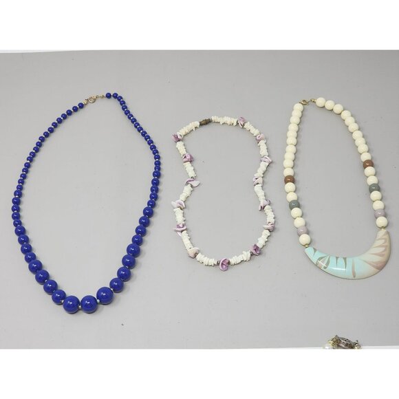 3 Vintage Costume Necklaces Shell/Blue Beaded/Choker