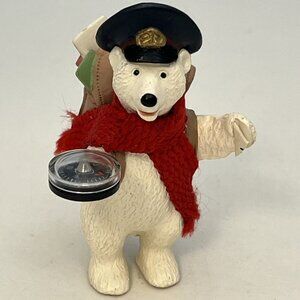 2. 1992 Polar Post white polar bear mailman ornament with compass. THIS ORNAMENT IS ORIGINALLY SUPPOSED TO HAVE A MAP IN ONE HAND THAT IS MISSING
