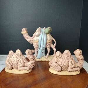 3 Vintage Hand Painted Ceramic Nativity Camels Atlantic Mold 1974