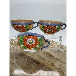 3 Vintage Hand Painted Lusterware Orange Gold Blue Floral Teacup Japanese READ