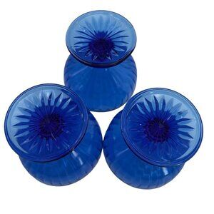 3 Vintage Hazel Atlas Aurora Colbalt Blue Footed Coupes Dessert Bowl Depression