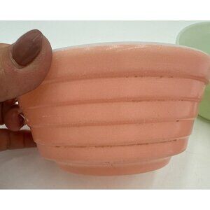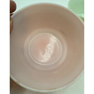 Both Pink Bowls have discoloring & one pink bowl has chip