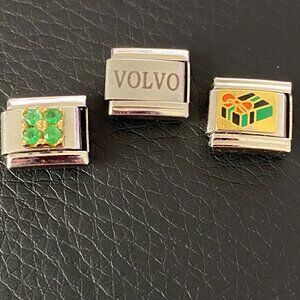 3 Vintage Italian Stainless Steel 9MM Charms - Volvo, May 4 Gem, Wrapped Gift