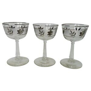 3 Vintage Libbey Silver Leaf Frosted Liquor Coctail Glasses Set 5 Inch