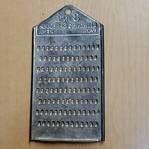 3 vintage shredders. For vegetables, cheese, slaw. These shredders would be great vintage decorations or are very usable. The small one is 3in1 Lightning Shredder. The medium size is Al in One shredder. The large us Rapid Slaw and Vegetable Cutter. A great bundle for the collector.